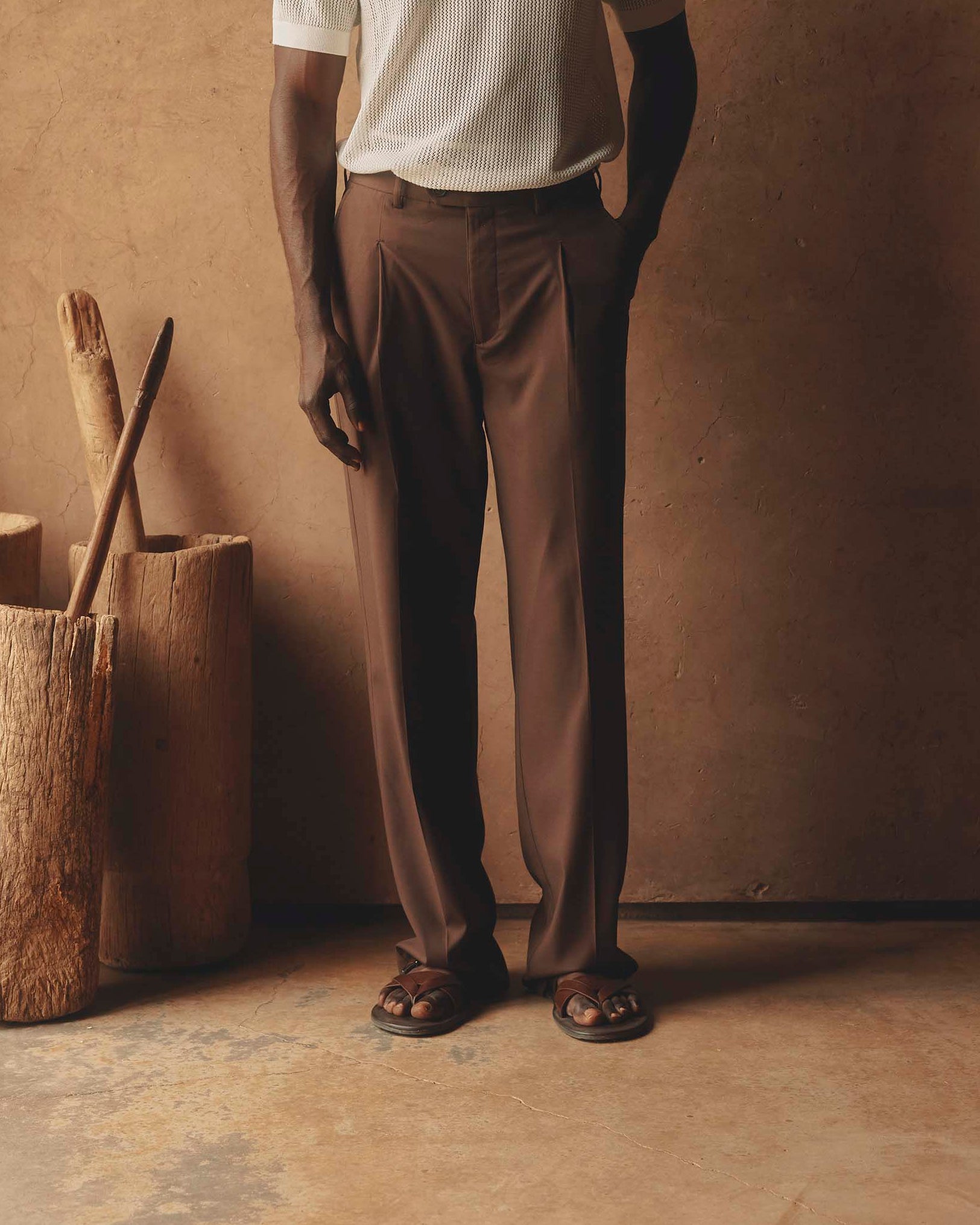 Defined by a discreet half-elasticated waistband and a clean, refined silhouette, it offers exceptional comfort, breathability and versatility throughout the day.